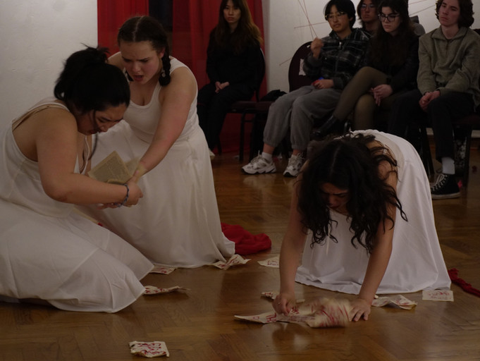 The traverse-staging in a gallery setting create an interactive, immersive space. By experimenting with the gaze and its reversal, the play allows the audience to join the students in exploring their gender identity, sexuality, desire, and free will.